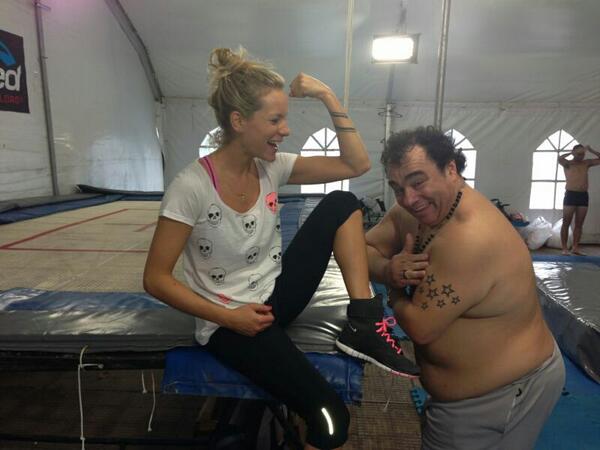 Anoche.. con el Goico, el Burrito y coachs, grabando hasta altas horas desde altos trampolines los primeros saltos en sincro para Celebrity Splash. Hoy soy un alto trapito.. sonriendo porque en dias es mi cumpleaños y lo festejo en el agua.