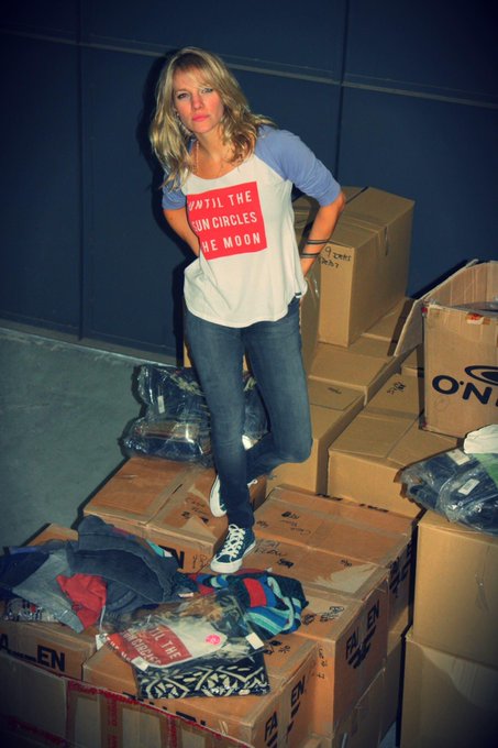 Virginia Da Cunha Acrobata entre cajas del depo de O´neill Argentina eligiendo pilchas, gracias Santiago Mejía!